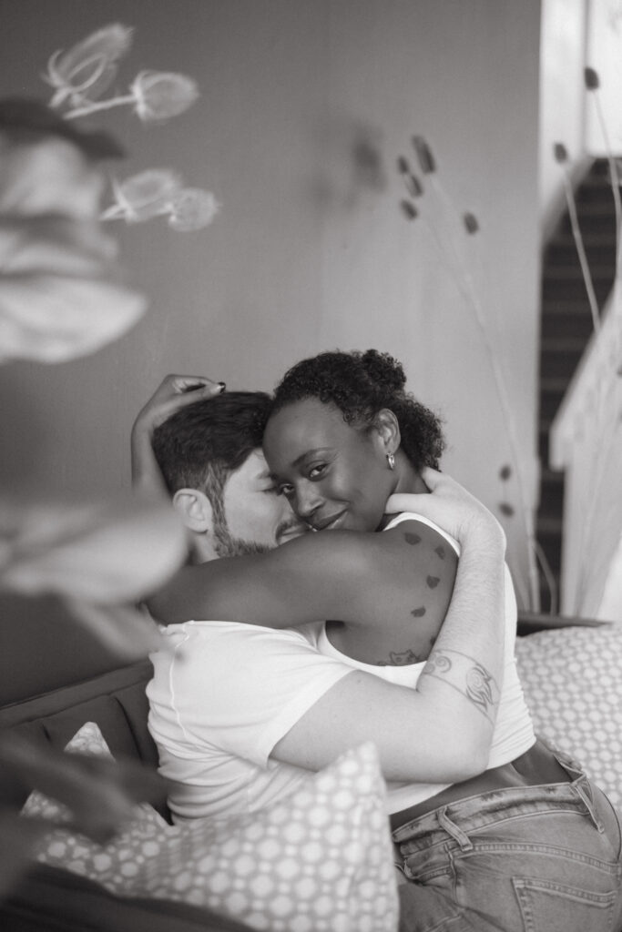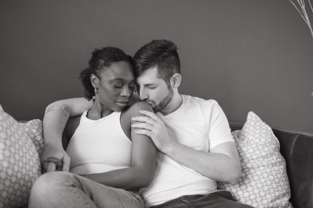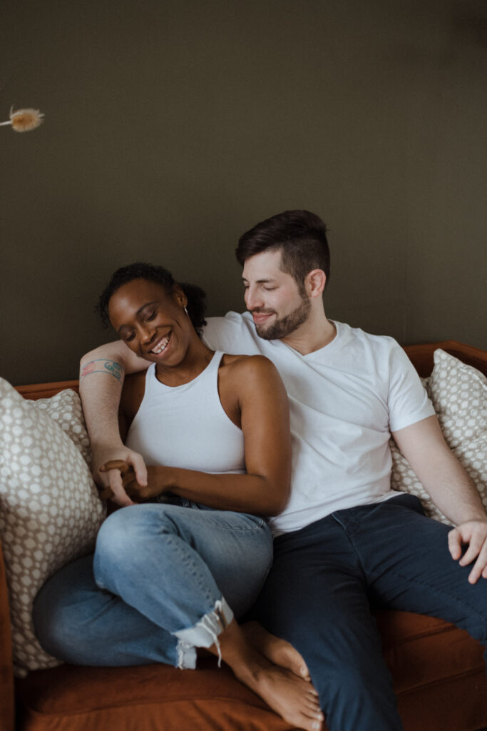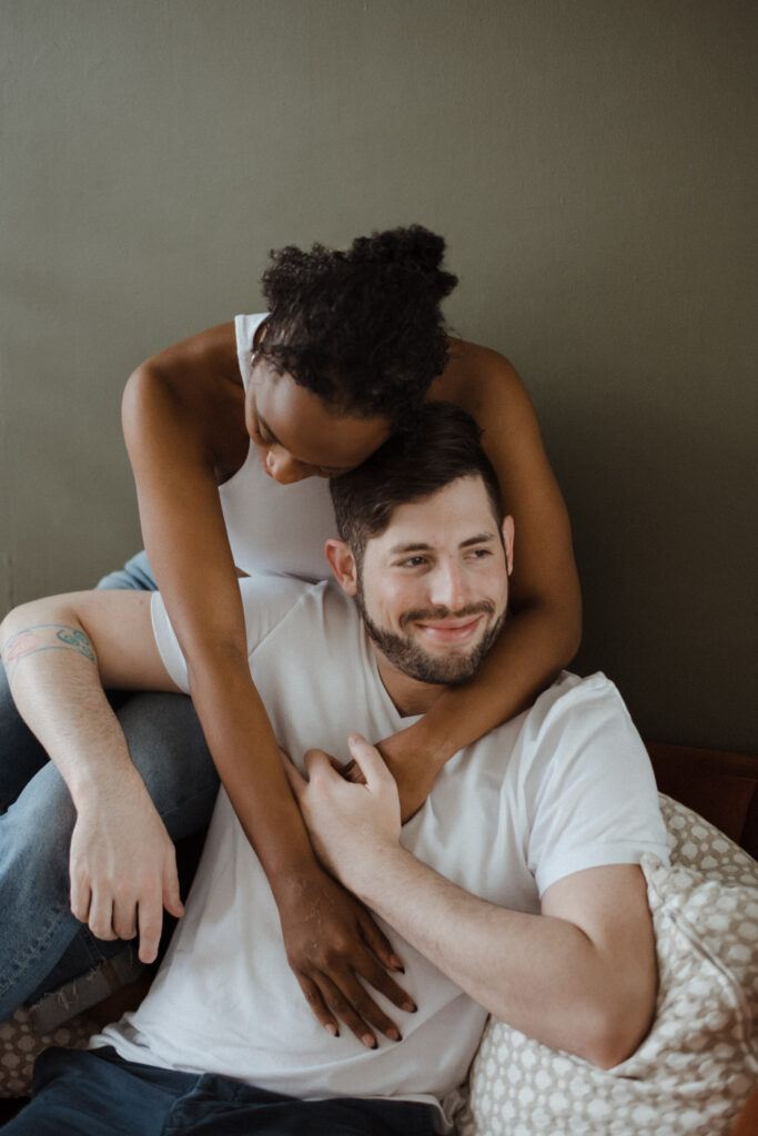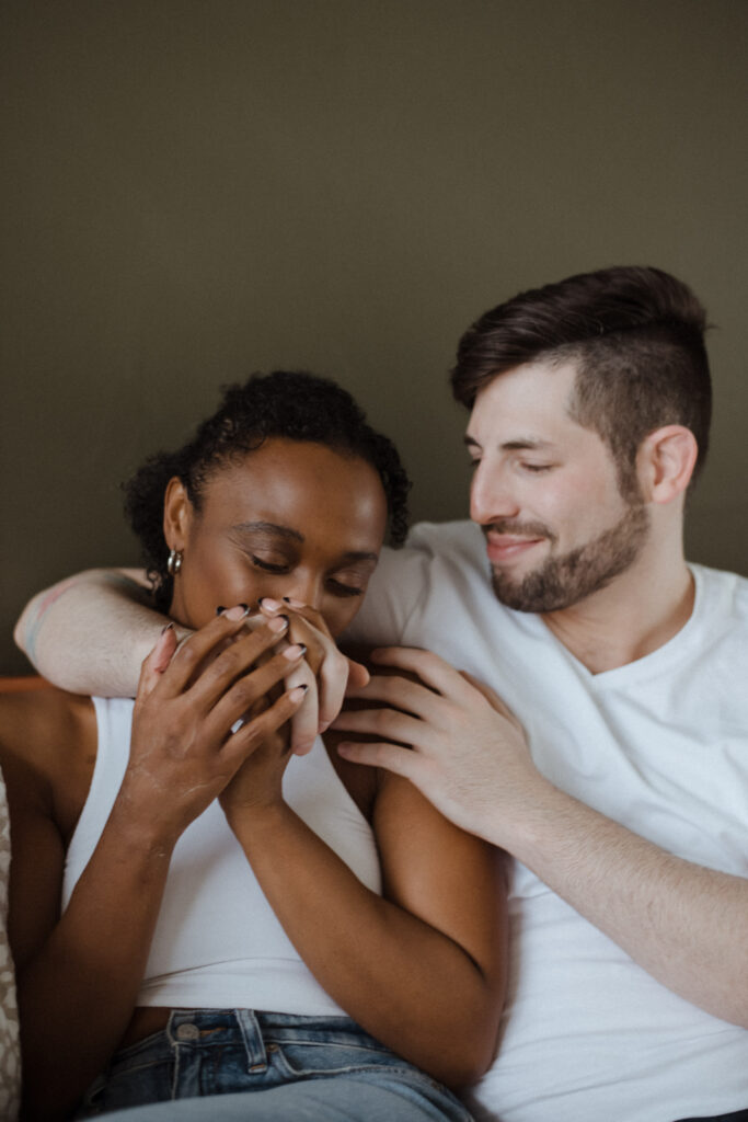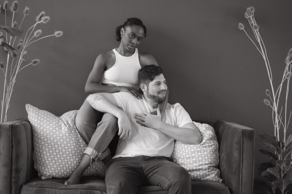 Couples studio sessions are such a great alternative to braving the cold during Colorado’s winter months. There’s so many amazing studio options along the front range! And most of them have rotating set designs to keep things fresh and fun. I personally enjoy the studios with great big windows for natural light. It’s a great way to get cozy and snuggly without worry about the weather outside. And it also is great for different times throughout the day, it truly doesn’t;t matter what time you do inside. This is great for families/newborns as well-as we know kiddos need to work around their nap schedules etc. Studios are a wonderful option for so many different schedules and style of portraits. I truly recommend considering them for any type of session!